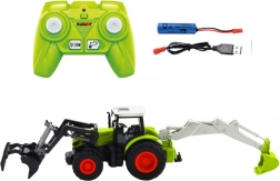 Ce tracteur réaliste à l’échelle 1:24 combine travaux agricoles et de chantier en un seul modèle. Le godet avant est pivotant, le bras arrière sert de petite pelle et les feux LED offrent un effet attrayant même dans la pénombre. Les roues en caoutchouc et la structure partiellement métallique supportent un jeu intensif à la maison comme en extérieur.