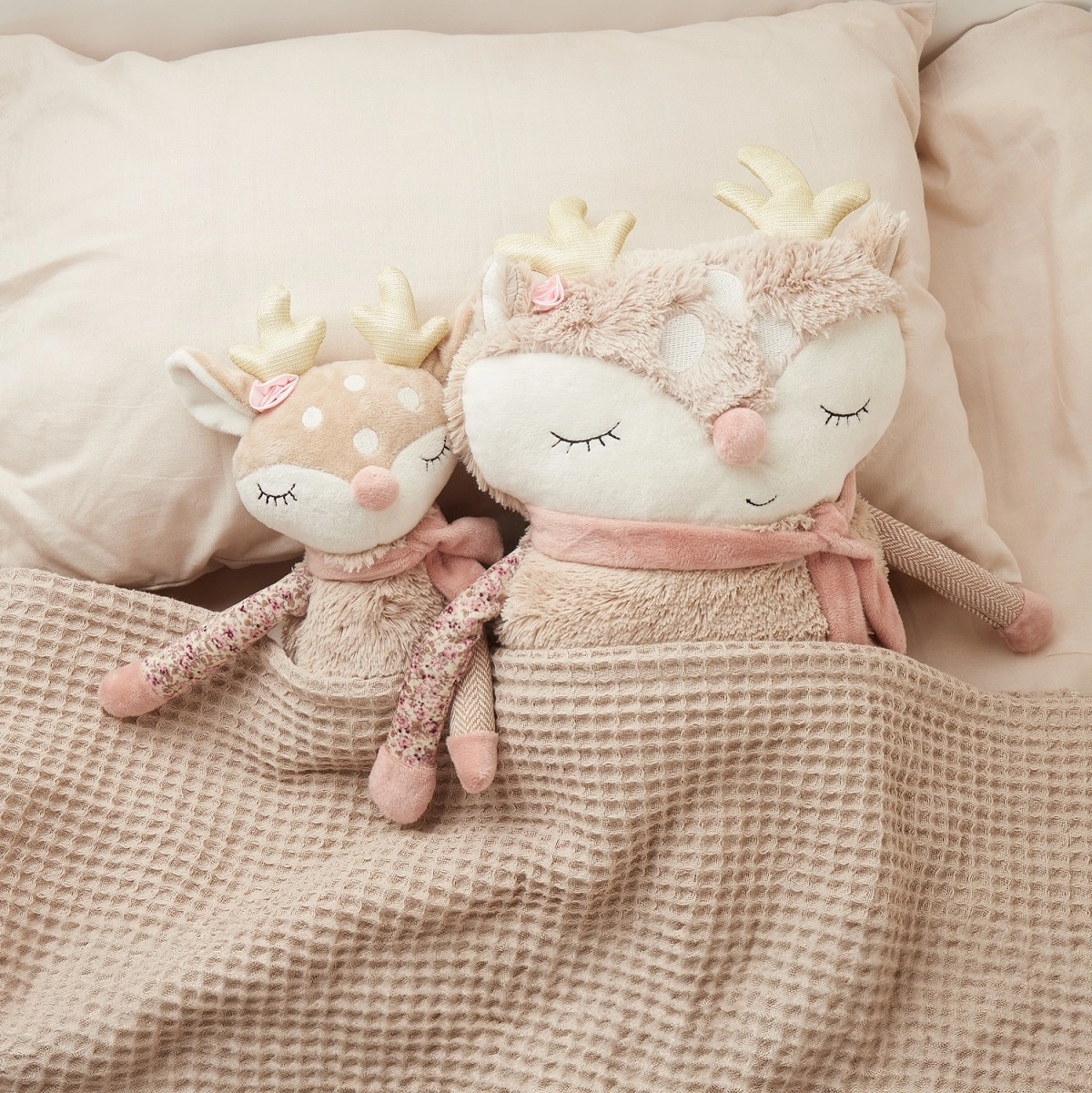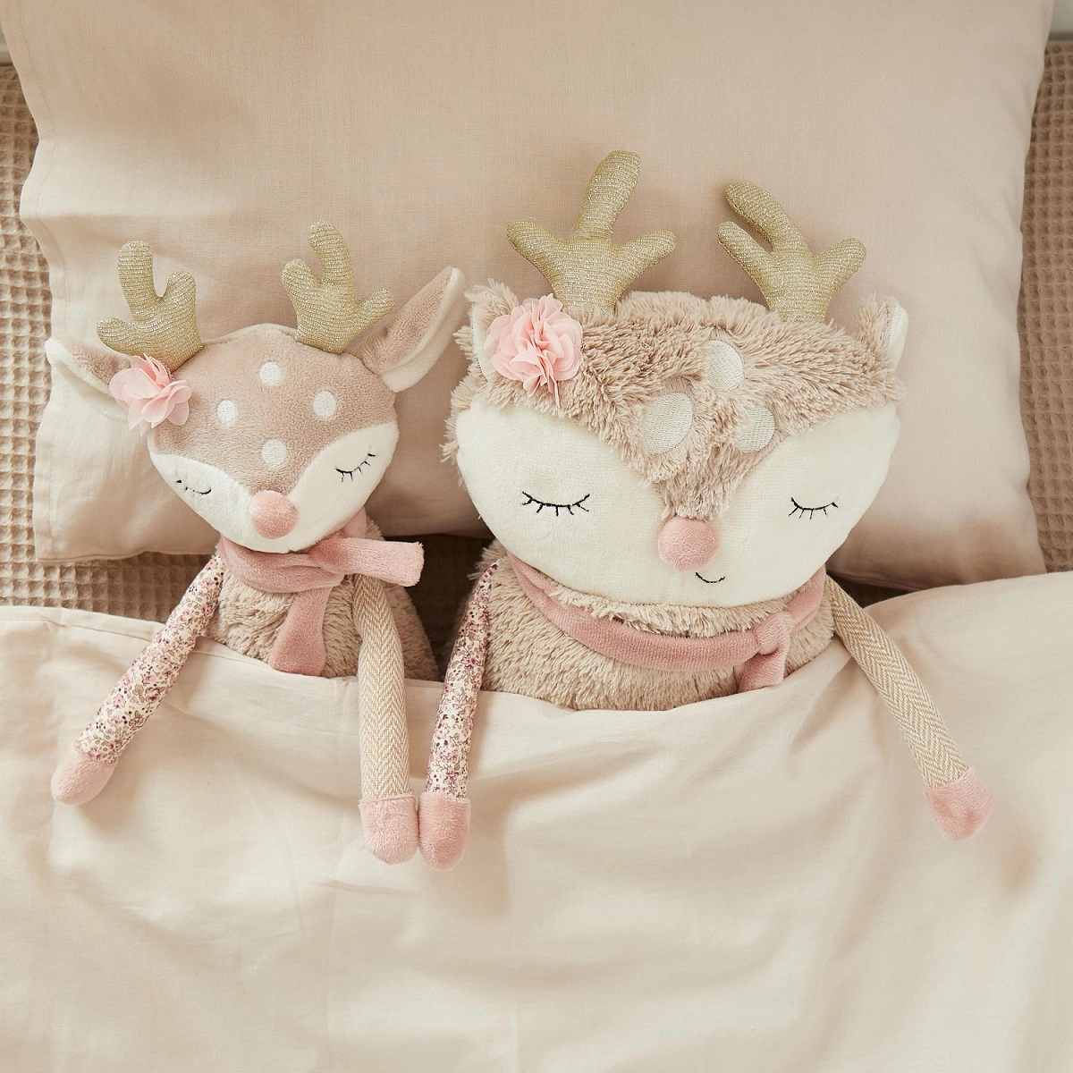 Le faon Ella est fabriqué dans une matière douce et agréable qui procure aux enfants un sentiment de sécurité et de confort dès les premiers jours.