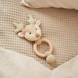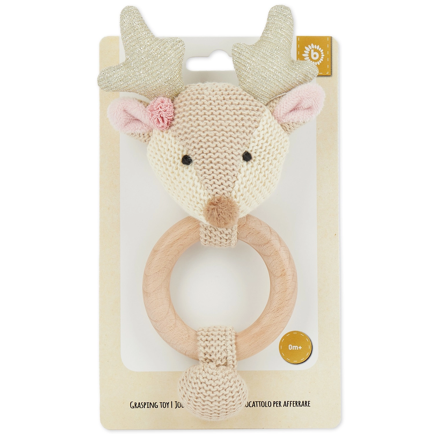 Ce jouet d’éveil au design soigné, avec anneau en bois et petit cerf en tissu, est idéal pour les premiers mois de vie. L’association du bois naturel et du tissu moelleux favorise la perception sensorielle, la motricité fine et la coordination œil-main. Son design élégant dans des tons sable plaira aux enfants comme aux parents.