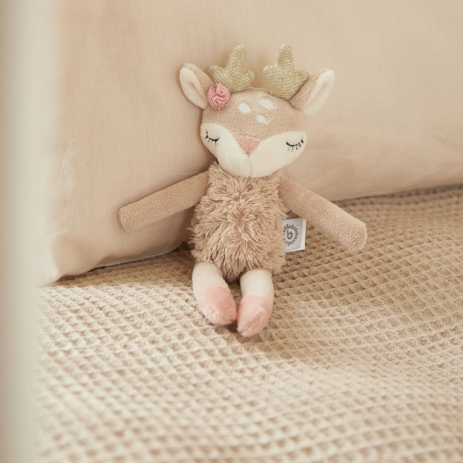 Le jouet textile Cerf Ella est le compagnon idéal pour votre bébé. Ce jouet adorable, doté d’un hochet doux à l’intérieur, offre non seulement du divertissement, mais aussi des moments apaisants avant le sommeil.