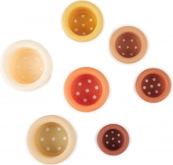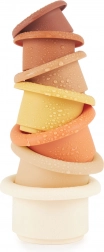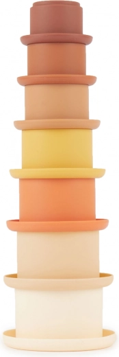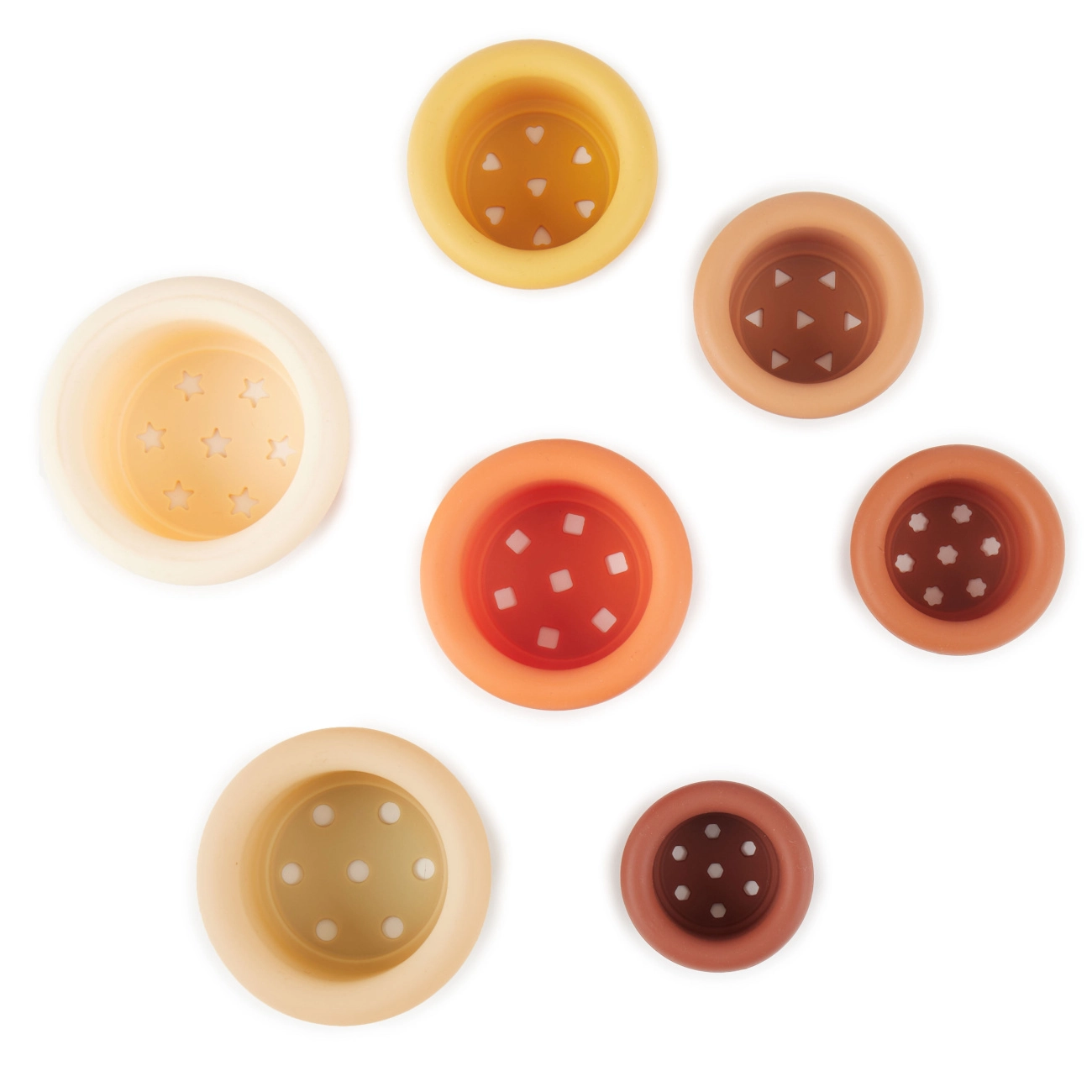Le set de gobelets empilables en silicone Bieco, dans de douces teintes terre, offre d’infinies possibilités de jeu à la maison comme dehors. Les enfants peuvent construire des tours, transvaser de l’eau ou jouer dans le sable – le matériau sûr et résistant supporte les aventures du quotidien et se nettoie facilement à l’eau et au savon doux.