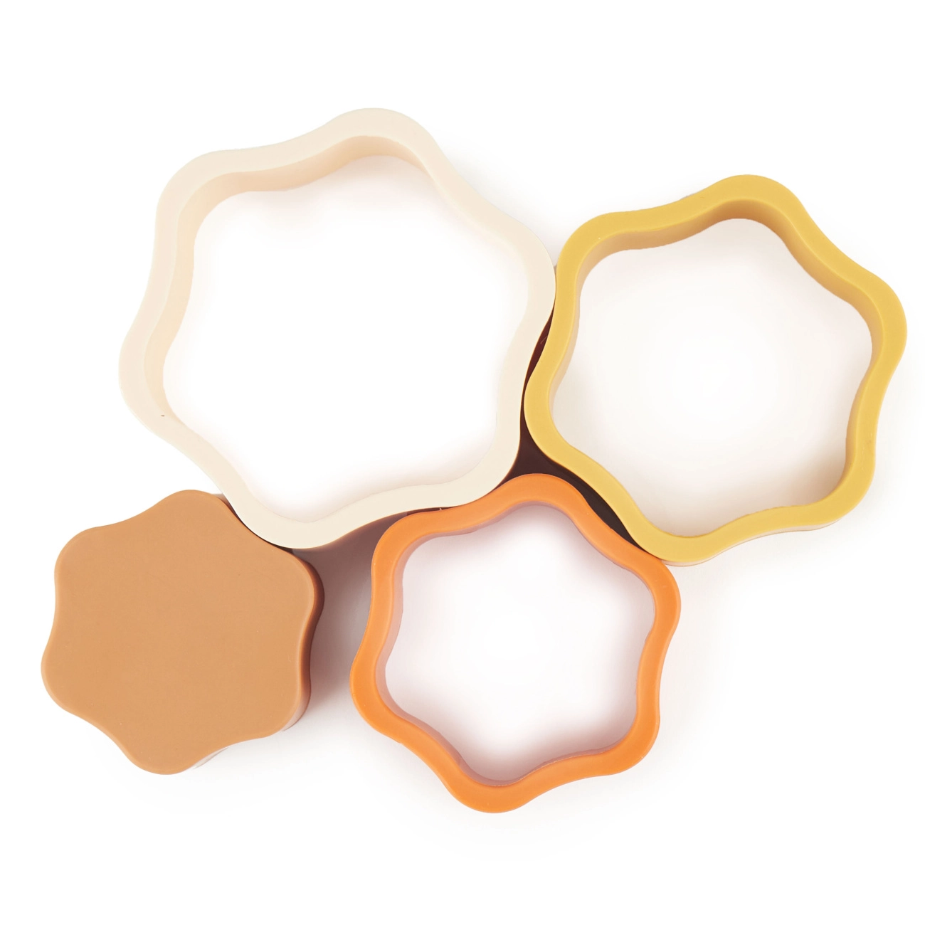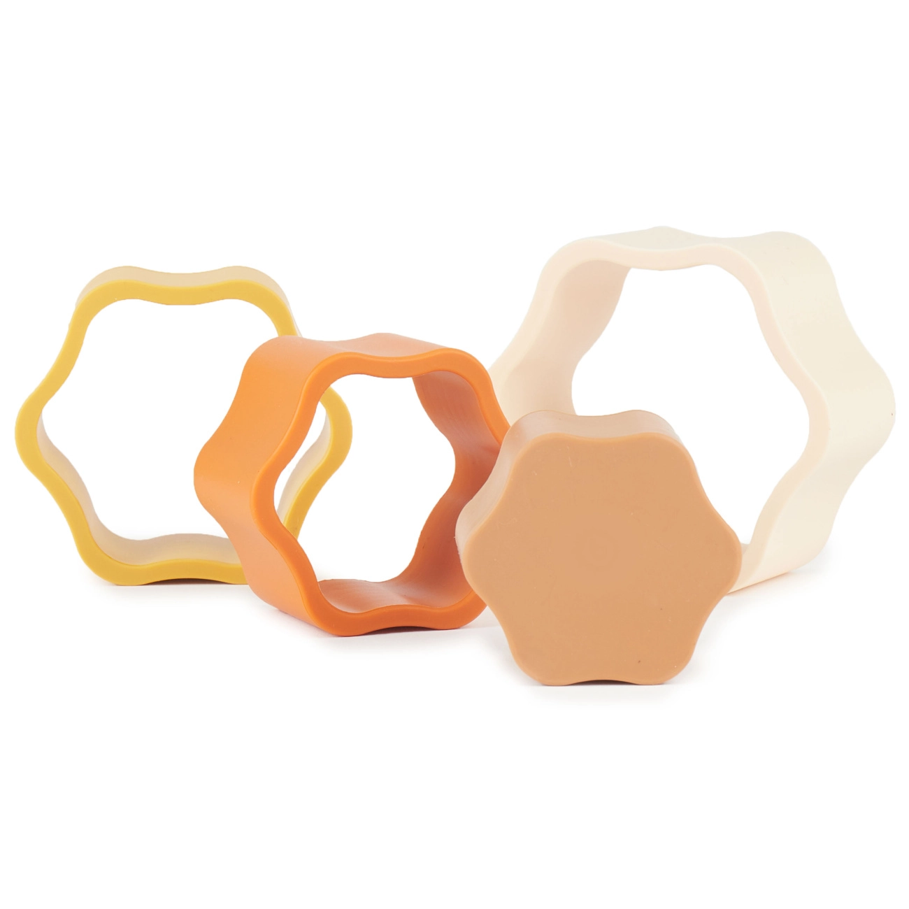 Ce set empilable de 4 pièces en forme de fleur est fabriqué en silicone 100 % de qualité alimentaire, doux au toucher, sûr pour les enfants et très durable. L’empilage et le tri des éléments développent la coordination œil–main, la motricité fine et la pensée logique.