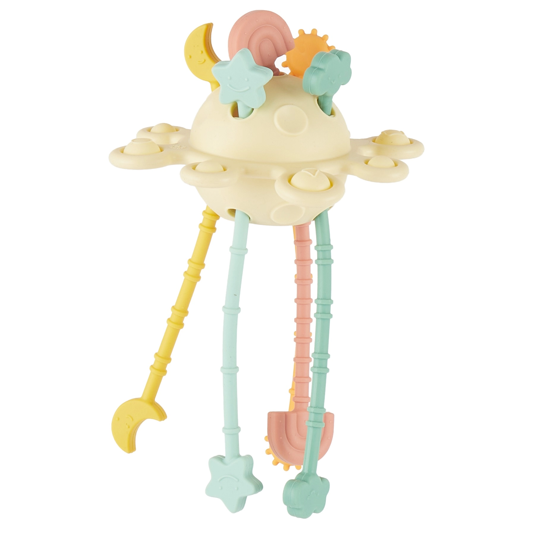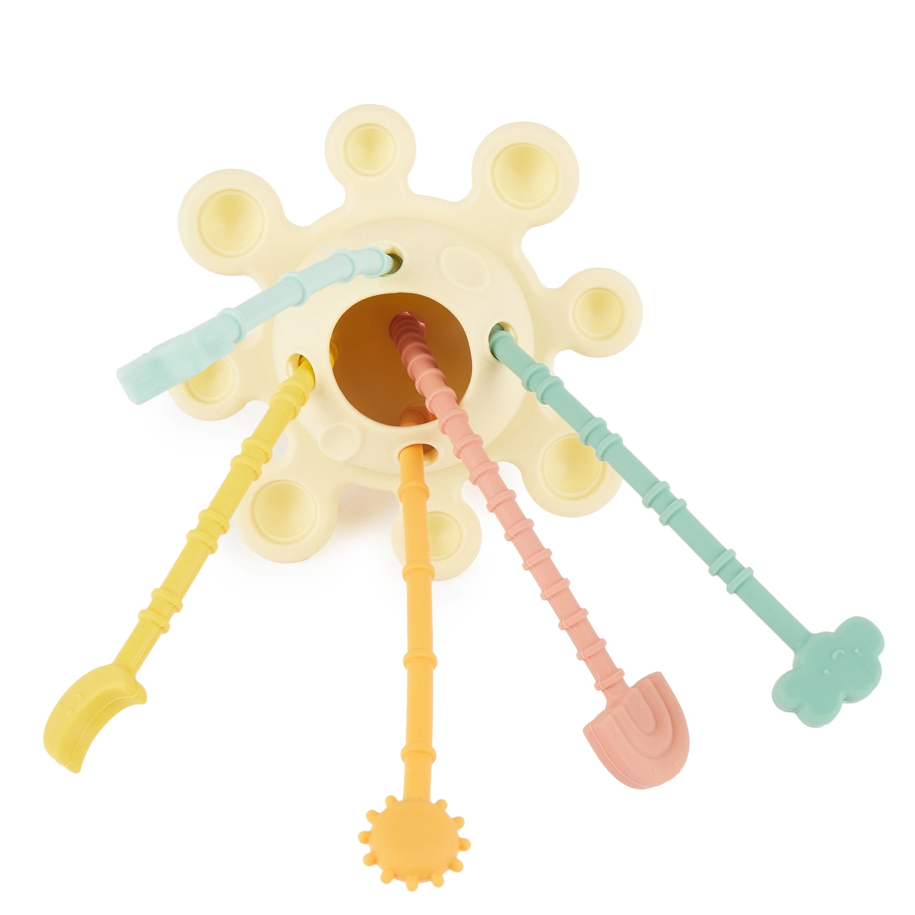 Ce jouet moteur en silicone est conçu selon les principes Montessori et aide les enfants à développer naturellement leurs compétences par le jeu. Les cordons à tirer robustes se manipulent d’avant en arrière, les éléments à presser renforcent les muscles des doigts et les textures variées stimulent le toucher et la curiosité.