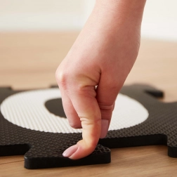 Chaque pièce avec lettre peut être retirée et utilisée pour des jeux, des constructions ou l’éveil. Le montage se fait en un rien de temps et les bords variables permettent d’assembler de petites surfaces comme de grands ensembles. Le matériau en mousse EVA résiste aux salissures et se nettoie facilement avec un chiffon humide.
