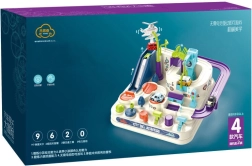 Le set comprend une piste d’obstacles colorée au design soigné, garantissant un maximum d’amusement et stimulant l’imagination de l’enfant. Avec quatre petites voitures, l’enfant peut franchir diverses obstacles comme des toboggans ou des ponts. L’utilisation de boutons spéciaux et de molettes de commande placés sur la planche contribue au développement de la logique et de la motricité.