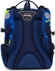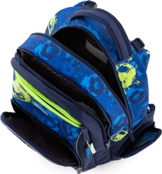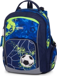 Set scolaire 3 pièces stylé pour petits footballeurs : sac à dos OXY GO, sac de sport et trousse. Le sac à dos possède un dos anatomique respirant, des bretelles réglables avec crochets, un fond rigide et imperméable et des éléments réfléchissants. Idéal pour le CP–CE2, volume 22 l, poids 930 g.