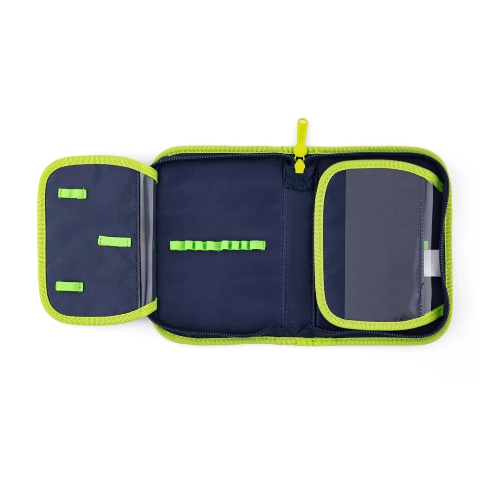 Un aménagement intérieur pratique facilite l’organisation des manuels, cahiers et boîtes à goûter. On trouve également des poches latérales – une zippée et une ouverte pour la bouteille – ainsi que des crochets astucieux pour fixer les longues extrémités des bretelles. Le set comprend en complément un sac de sport à cordon et une trousse à un étage avec deux rabats, des passants élastiques et un film transparent pour l’emploi du temps.