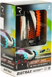 REVOLT BIOTRAX est un mini modèle tout-terrain à chenilles qui s’adapte à différents types de surfaces – du tapis à la pelouse. Un corps en plastique robuste et des chenilles en caoutchouc garantissent une excellente adhérence et durabilité, tandis que les effets LED mettent en valeur chaque figure, même de nuit.
