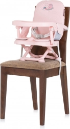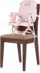 Chaise rehausseur pour enfant CHIPOLINO Lollipop flamingo, légère et compacte, pour les enfants sachant s’asseoir seuls jusqu’à 3 ans et 15 kg. Elle offre des ceintures de sécurité, un plateau en plastique amovible, un entretien facile et un réglage en hauteur sur 3 positions. Grâce aux sangles de fixation, vous l’attachez facilement et en toute sécurité à la plupart des chaises de cuisine.