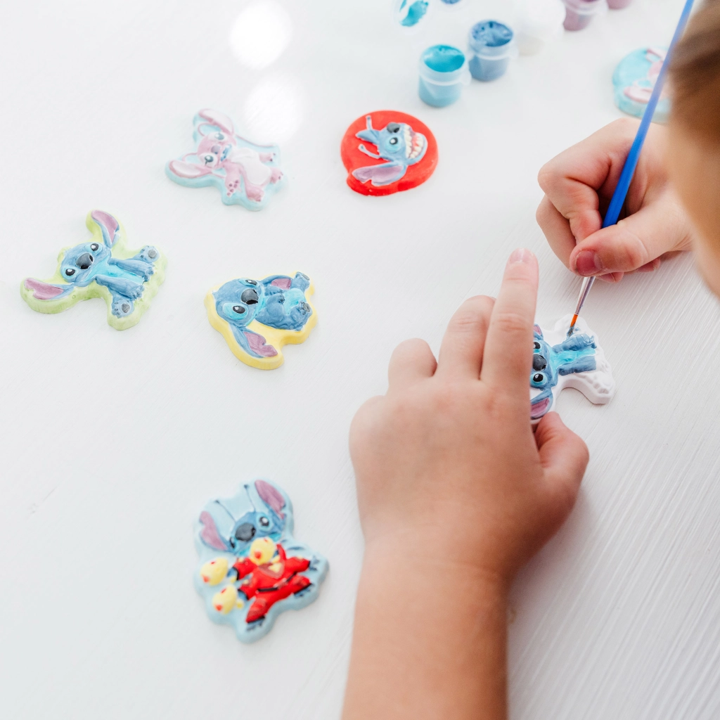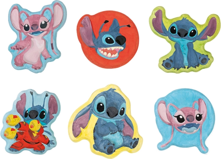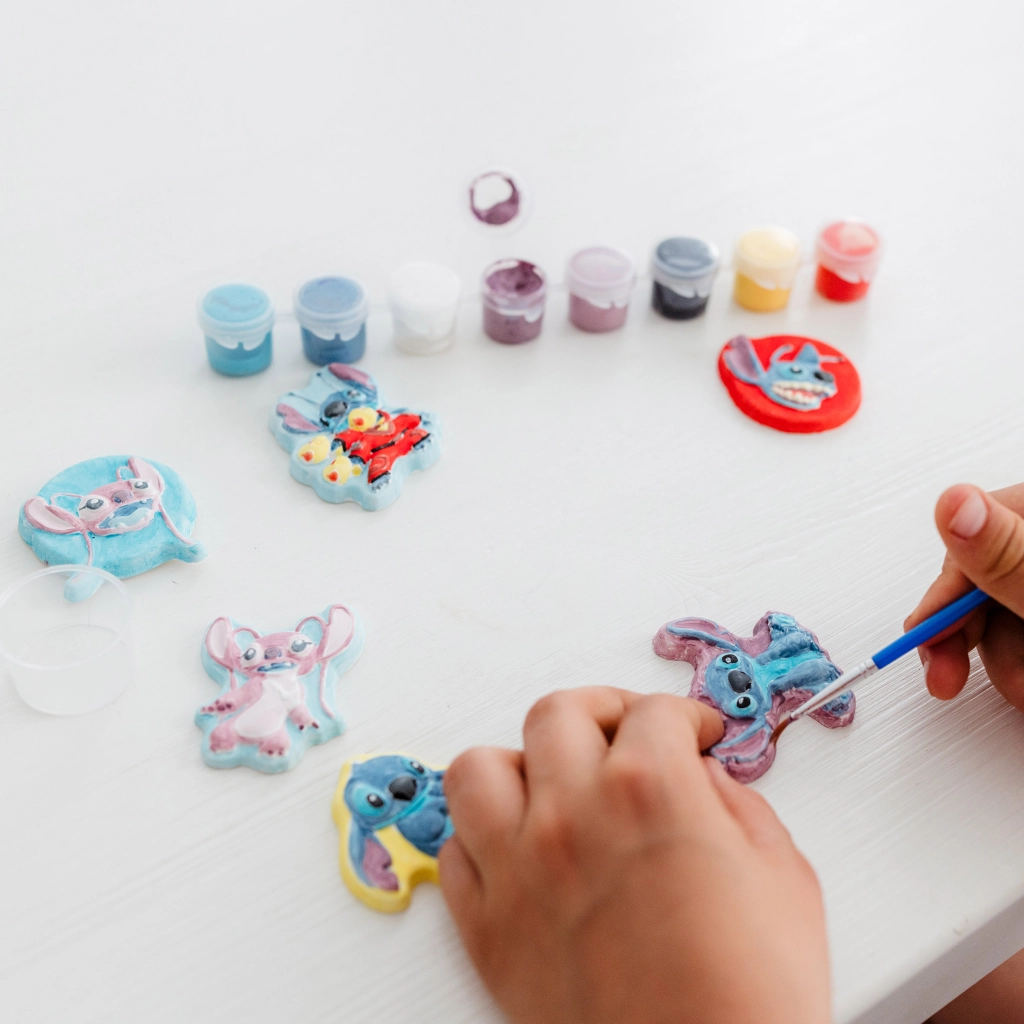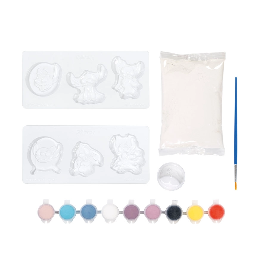 La deuxième partie du coffret ravira tous les petits artistes : à l’aide de plâtre et de moules, réalisez d’adorables figurines STITCH et ANGEL, que vous peindrez avec les couleurs fournies. Un pinceau fin et un gobelet doseur pratique facilitent la tâche même aux débutants.