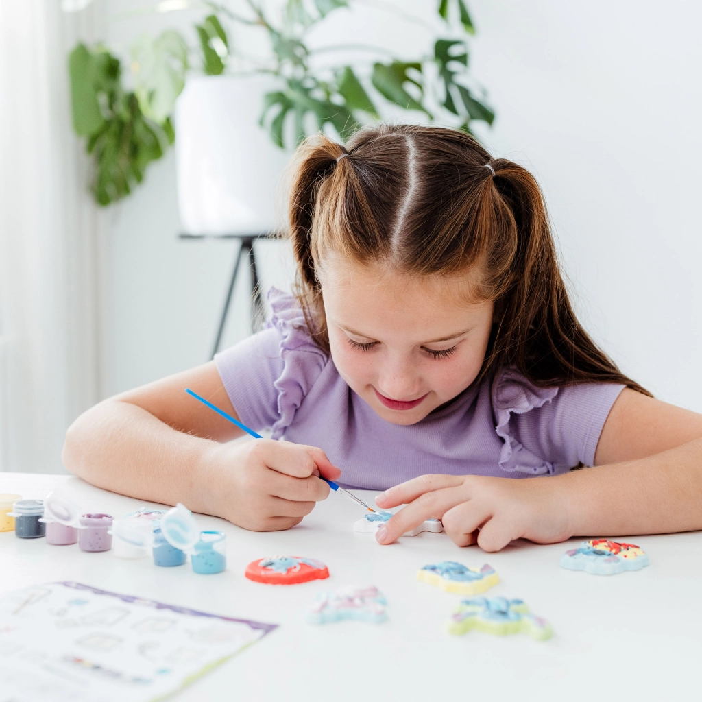 Créez des personnages en plâtre à l’aide de moules, puis décorez-les avec les peintures et le pinceau fournis. Une excellente activité pour stimuler la créativité.