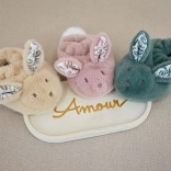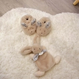 Offrez à votre enfant une sensation de calme et de sécurité avec ce coffret qui contient non seulement un lapin en peluche orné d’un élégant ruban, mais aussi des chaussons avec imprimé d’oreilles de lapin et visage brodé.