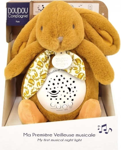 Ce produit multifonction stimule le développement sensoriel des enfants et constitue un cadeau idéal dès la naissance. Il est facile à entretenir grâce à la boîte à musique amovible. Le lapin est conforme aux normes européennes CE et fonctionne avec trois piles AAA/R03.