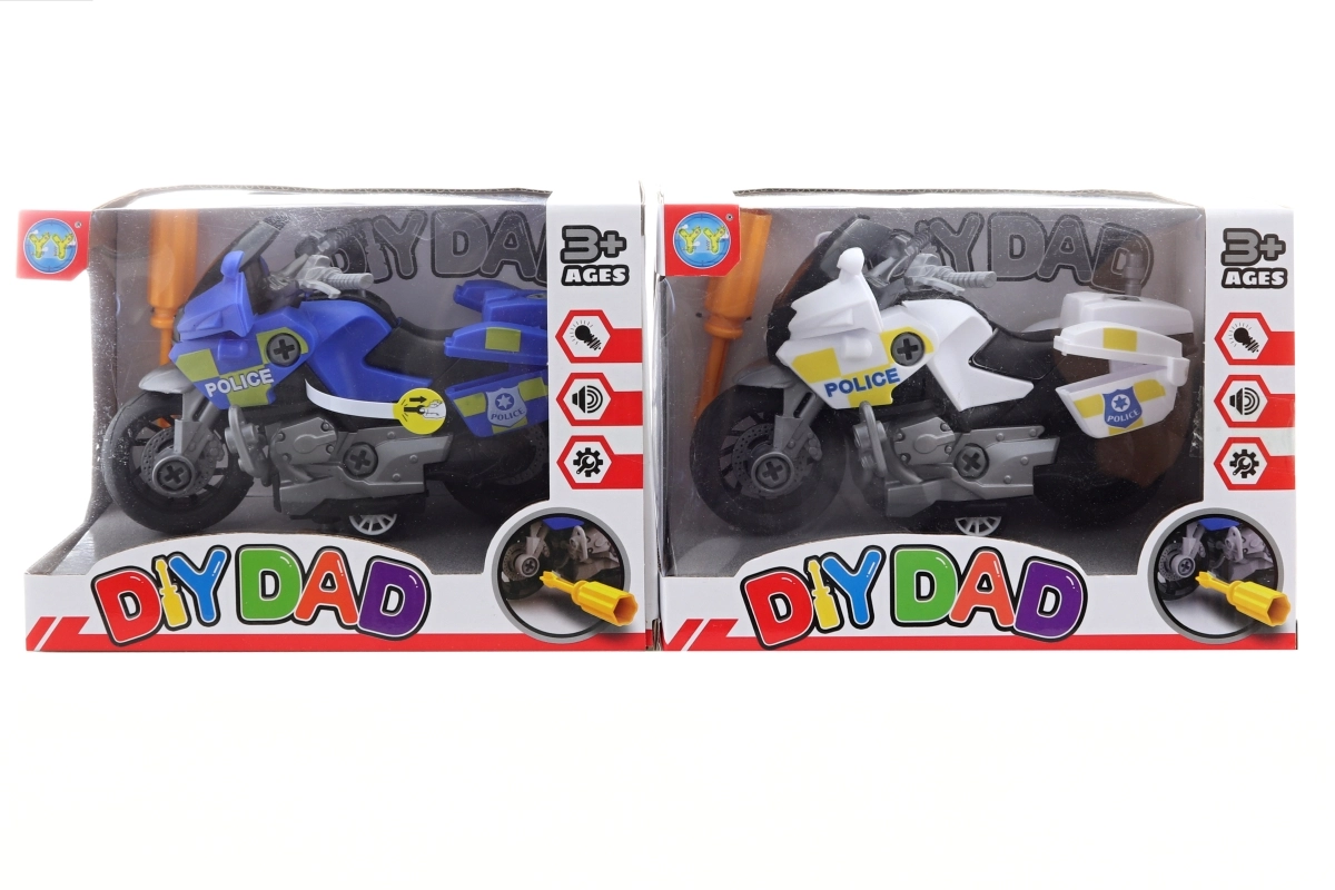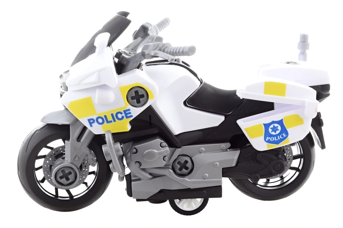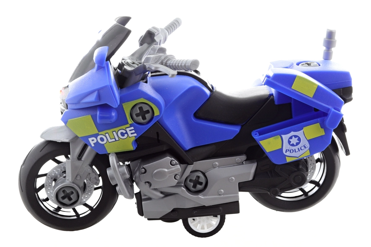Cette moto à visser est un jouet idéal pour les enfants dès 3 ans. Des effets lumineux et sonores attrayants, activés par simple pression sur un bouton, offrent un divertissement garanti. La moto est fabriquée en plastique et les piles sont incluses, ce qui permet une utilisation immédiate.