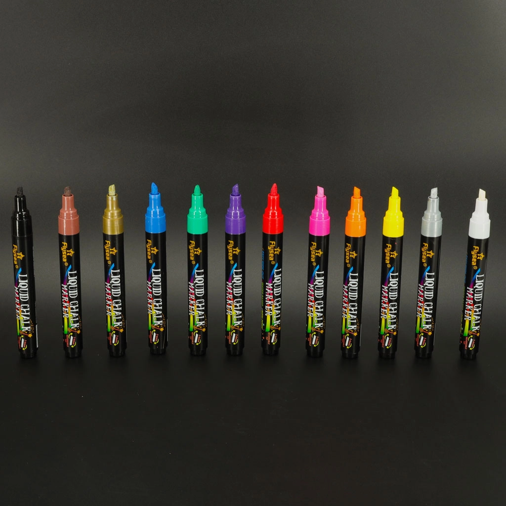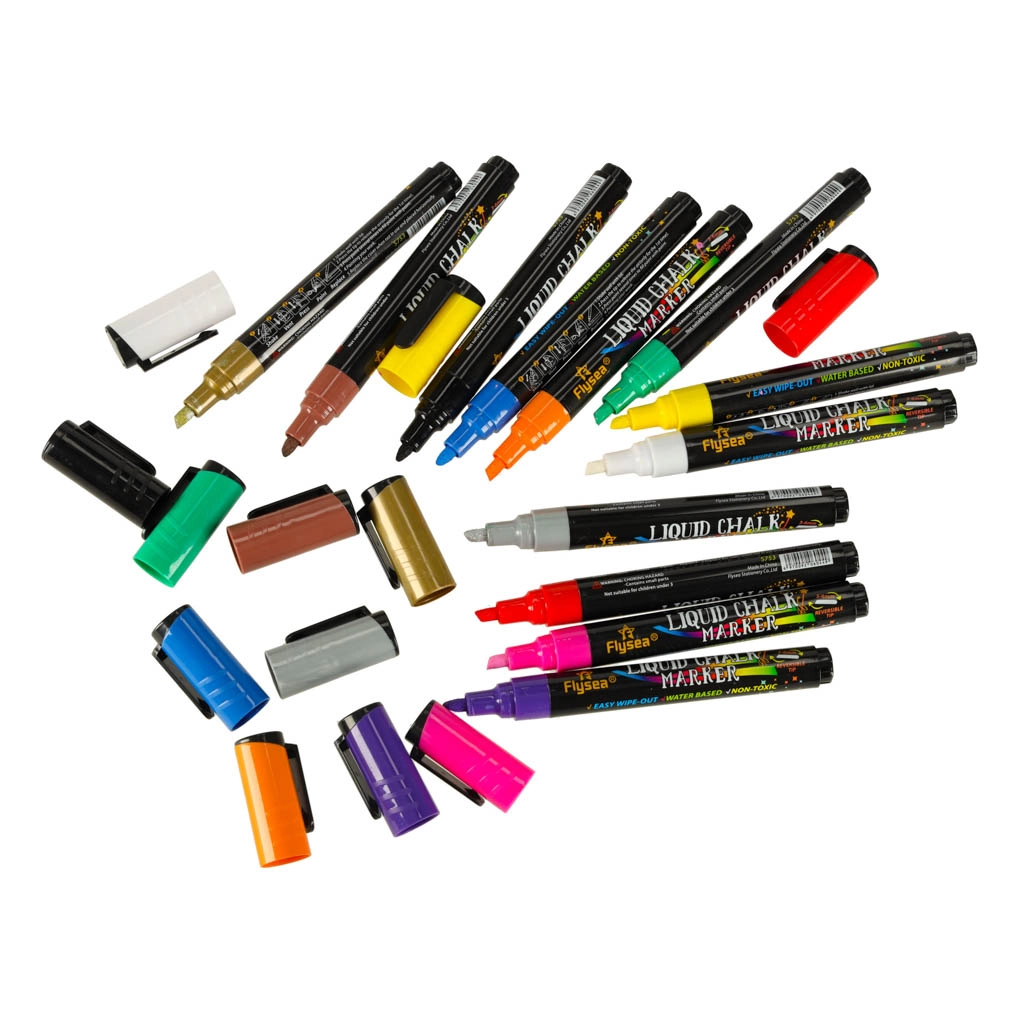 Marqueurs craie colorés pour verre et tableaux - set de 12 pièces