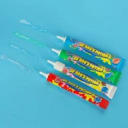 Le kit contient quatre tubes de colle de couleurs différentes et des moules avec divers motifs.