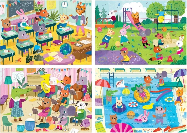 Le thème Une journée à l’école est coloré, clair et attrayant pour les enfants. Grâce au format identique de 28 × 20 cm, les puzzles se rangent et se stockent facilement. L’impression de qualité et les pièces robustes garantissent une longue durée de vie et un assemblage confortable.