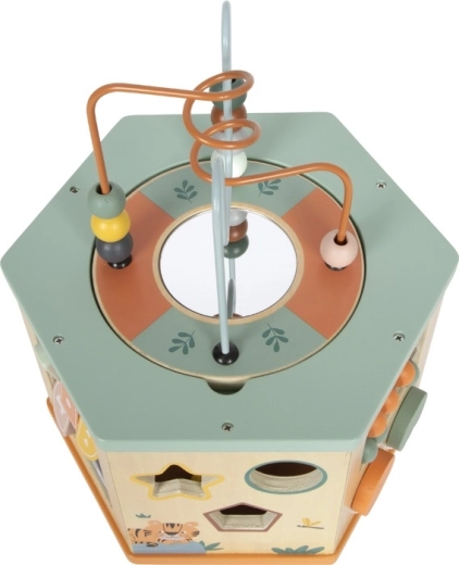 Découvrez un cube d’activités en bois au thème safari offrant 7 faces de jeu pleines de plaisir et d’apprentissage. Les enfants apprécieront le labyrinthe de perles, les pistes coulissantes, les formes à encastrer, le boulier, le xylophone et les rouages. Le cube stimule la motricité fine et globale, la coordination œil–main et la perception sensorielle. Il comprend également un rangement interne pour les formes et un couvercle réversible avec labyrinthe pour gagner de la place.