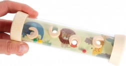 Le tube transparent avec des obstacles en bois crée des effets sonores agréables qui stimulent la perception et la concentration.