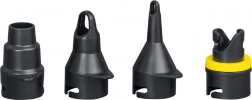 Le jeu de quatre buses différentes s’adapte à la plupart des valves de matelas, piscines et autres produits gonflables.
