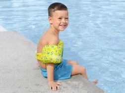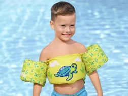 Vous cherchez une aide fiable pour les premiers pas en natation ? Le BESTWAY Puddle Jumper combine un gilet de flottabilité et des manchons en un seul ensemble, aidant l’enfant à garder une bonne position dans l’eau sans restreindre ses mouvements. Le motif tortue amusant et les couleurs estivales vives motivent les enfants et améliorent la visibilité.
