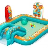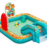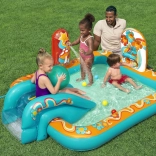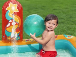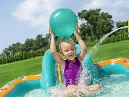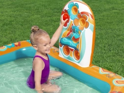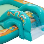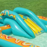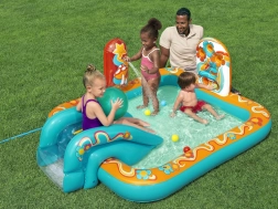 Le centre de jeu gonflable BESTWAY Retro Groove transforme votre jardin en un terrain de jeu aquatique haut en couleur. Le toboggan solidement fixé au fond mène à une petite piscine peu profonde, tandis que la douche d’eau, facilement raccordée au tuyau, apporte une sensation de fraîcheur. Les graphismes rétro et les accessoires tels que les balles et le ballon de plage encouragent le jeu créatif et le développement de la motricité.