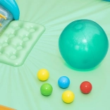 Il comprend également un mur de tri des balles inspiré des « rollers » rétro, qui apprend aux enfants la précision et la coordination de manière ludique. Grâce à la valve de vidange, la piscine se vide rapidement et se range en toute simplicité. Le centre peut être utilisé toute l’année – en été avec de l’eau, hors saison comme aire de jeu sèche.