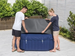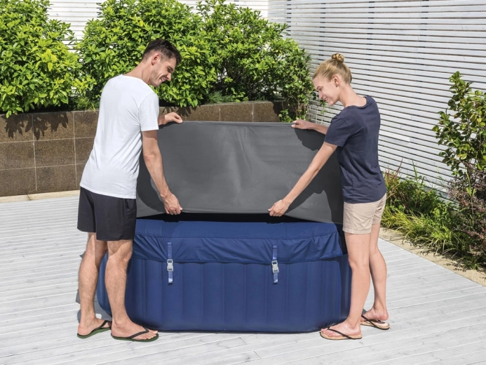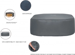 Le matériau résistant DuraPlus est conçu pour une utilisation extérieure à long terme – il est imperméable, dimensionnellement stable et facile à entretenir. L’ouverture zippée permet de raccorder une pompe intégrée ou externe sans retirer la couverture, pour une maintenance simple et rapide.