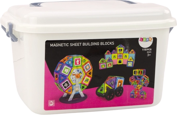 Découvrez un monde créatif avec cet ensemble de construction magnétique comprenant au total 118 pièces. Grâce à des aimants puissants et à des formes uniques, les enfants construisent facilement une roue à aubes, des bâtiments, de petites voitures et bien d’autres projets. La valise avec poignée facilite le rangement et le transport, tandis que les éléments interactifs et les autocollants éducatifs stimulent la créativité, la pensée logique et la motricité fine.