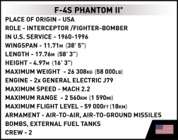 Construisez l’iconique chasseur embarqué à l’échelle 1:48 ! Le set sous licence COBI F-4S Phantom II Black Bunny propose 608 pièces, une verrière ouvrante, des surfaces de contrôle mobiles, un train d’atterrissage et un armement amovibles ainsi qu’un support avec plaque signalétique. Le tout avec 100 % d’impressions, sans autocollants pour une authenticité maximale.