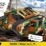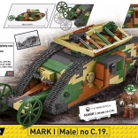 Icône de la Première Guerre mondiale pour votre collection ! Avec 878 pièces, construisez un char Mark I (Male) à l’échelle 1:35 de COBI avec des chenilles fonctionnelles, des canons pivotants et des trappes ouvrantes. Inclus également une figurine de tankiste britannique, des impressions durables sans autocollants et la licence officielle The Tank Museum.