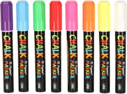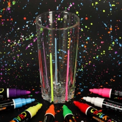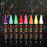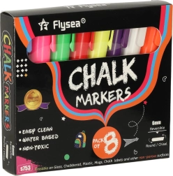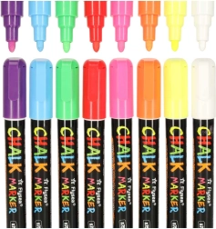 Chaque marqueur a une pointe double face (ronde et biseautée) qui peut être tournée selon les besoins, assurant précision et diversité des lignes créées. L'encre à base de craie et d'eau ne laisse pas de traces; un chiffon humide suffit pour l'éliminer - sans bavures ni résidus. De plus, il ne salit pas les mains et ne crée pas de poussière comme la craie traditionnelle.