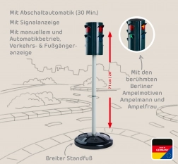 Le feu de signalisation pour enfants BIG est l'outil parfait pour éduquer les plus jeunes aux règles de la circulation. Grâce à l'alternance réaliste des lumières et aux personnages sous licence Ampelmännchen & Ampelfrau de la marque AMPELMANN, les enfants à partir de 3 ans peuvent jouer et apprendre les règles de la circulation en toute sécurité.