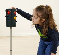 Le feu offre trois lumières qui fonctionnent comme dans la vraie circulation : rouge, jaune et vert.