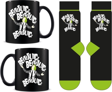 Un coffret cadeau pour homme au style BEETLEJUICE qui ravira tout fan. Il comprend une tasse en céramique 315 ml compatible lave-vaisselle et four à micro-ondes, ainsi que des chaussettes taille 41–45 confortables en matière agréable.