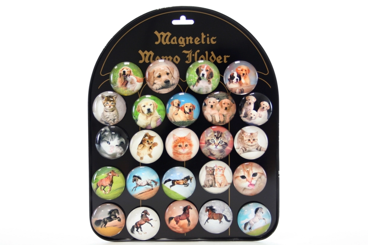 Un ensemble décoratif de 24 aimants à motifs de chiens, de chats et de chevaux ravira les enfants comme les amoureux des animaux. Chaque aimant mesure environ 4 cm, fournis sur un tableau magnétique avec support d’environ 22 × 27 cm. Idéal comme décoration pour réfrigérateur, tableau ou bureau.