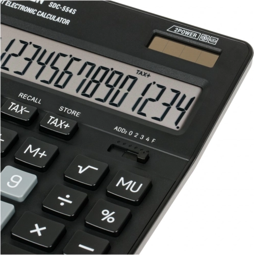 La calculatrice est équipée d’un écran 14 chiffres, clair et lisible, qui facilite le travail avec de grands nombres.