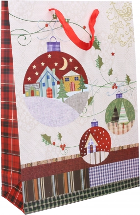 Le sac cadeau en papier avec motif de Noël est un choix idéal pour emballer rapidement et avec esthétique vos présents. Grâce à ses dimensions généreuses, il accueille confortablement des objets volumineux et sa fabrication solide garantit un transport en toute sécurité.