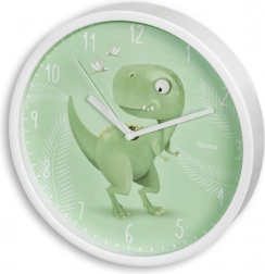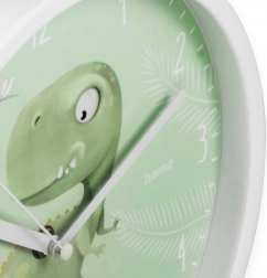 L’horloge au motif dinosaure apporte jeu et couleurs à la chambre grâce à son fond vert orné de dinosaures.