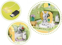 L’éclairage USB intégré illumine l’intérieur de la maisonnette et met en valeur les détails des plantes et du mobilier. Connexion facile, effet visuel marqué.