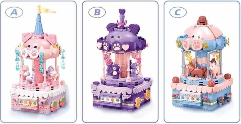 Profitez d’un divertissement comme à la fête foraine avec le jeu de construction Sluban manège avec petit animal. Un set aux couleurs pastel, avec un mécanisme rotatif et un choix de 3 motifs (chaton, chiot, ourson). Les pièces sont compatibles avec d’autres marques et fabriquées en plastique ABS résistant et sûr.