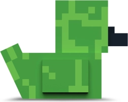 Ce canard se distingue par son design pixelisé et marquant inspiré du Creeper du célèbre jeu Minecraft.