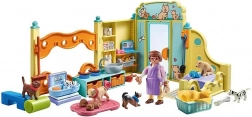 L’intérieur propose un coin de lavage, des couchettes, un enclos et des gamelles. Les enfants découvrent tous les aspects des soins aux animaux de compagnie et développent leur empathie ainsi que leur dextérité.