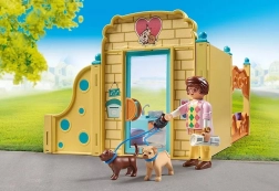 La PLAYMOBIL Maison pour chiots offre aux enfants un univers plein de tendresse et d’amusement. Laissez les petits éleveurs découvrir la routine quotidienne avec les chiots : les laver dans le coin de lavage, les nourrir dans les gamelles, les peser et les installer dans de douillettes couchettes. Grâce à la laisse double, partez pour des promenades joyeuses avec deux chiens à la fois.