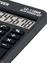 Le grand écran LCD affiche jusqu’à 8 chiffres. Sont disponibles l’addition, la soustraction, la multiplication, la division, les pourcentages ainsi que des touches mémoire pour un travail efficace.