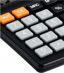 Elle dispose des opérations arithmétiques de base, de fonctions mémoire (M+, M-, MR, MC), du calcul des pourcentages et de la racine carrée. Les touches fonctionnelles orange contrastées et les grands chiffres garantissent une navigation rapide et minimisent les erreurs de saisie.