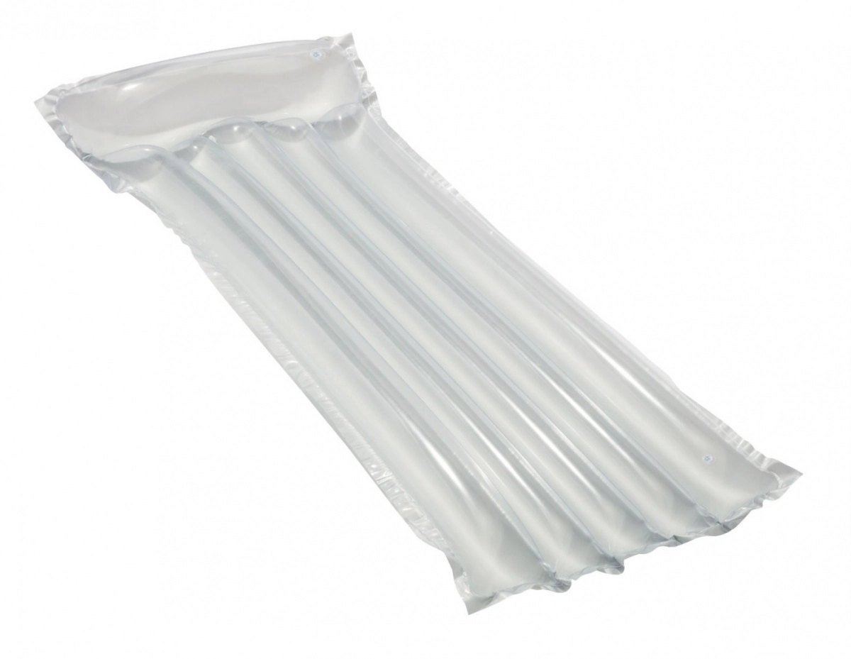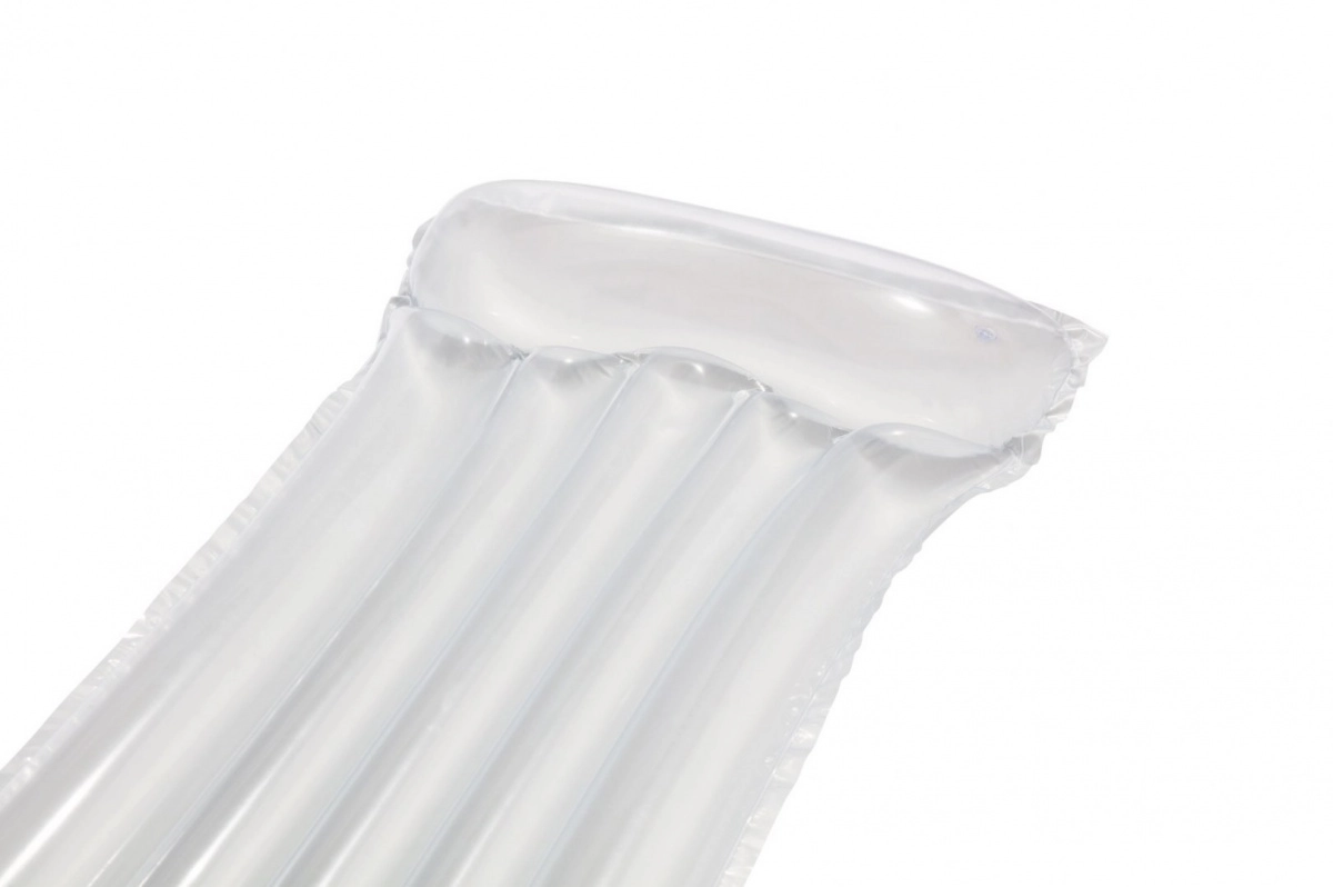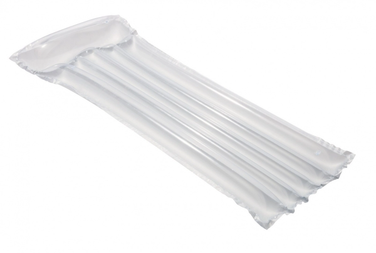 Ce matelas gonflable Bestway de 183 × 76 cm est un choix idéal pour se détendre à la surface de l’eau. Grâce au vinyle résistant et à la construction à deux chambres, il offre stabilité et fiabilité. Le design transparent à nuance argentée est à la fois élégant et stylé.