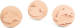 Ces tampons en bois vous permettent d'imprimer un dauphin, un poisson et une baleine dans le sable. Idéal pour les enfants dans le bac à sable ou sur la plage. Ce jeu soutient la motricité, la créativité et le jeu en plein air.