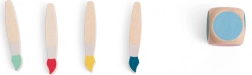 Enrichissez le jeu des enfants avec le Pexeso de peinture. Placez les pinceaux dans les trous de la palette, lancez le dé et cherchez le pinceau de couleur correspondant à la couleur du dé. Si vous trouvez le bon pinceau, gardez-le et lancez à nouveau. Sinon, remettez le pinceau en place. Ce jeu soutient la motricité fine et la mémoire des enfants.