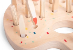 Grâce à l'insertion et au retrait des pinceaux en bois, les enfants développent leur motricité fine. Un design ergonomique facilite la manipulation.